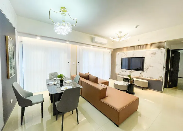 ベッドルーム1室のLuxurious 3Br In Manila Bay Beside Okadaアパートメントはザ・ブルーリーフ・フィリピーナスから徒歩で25分くらいの場所にあり、周辺の数多くの観光スポットへ行きやすいです。 このアパートは、Wi-Fiなどのモダンな設備や、車でお越しの旅行者向けの駐車場などの必需品を提供しています。